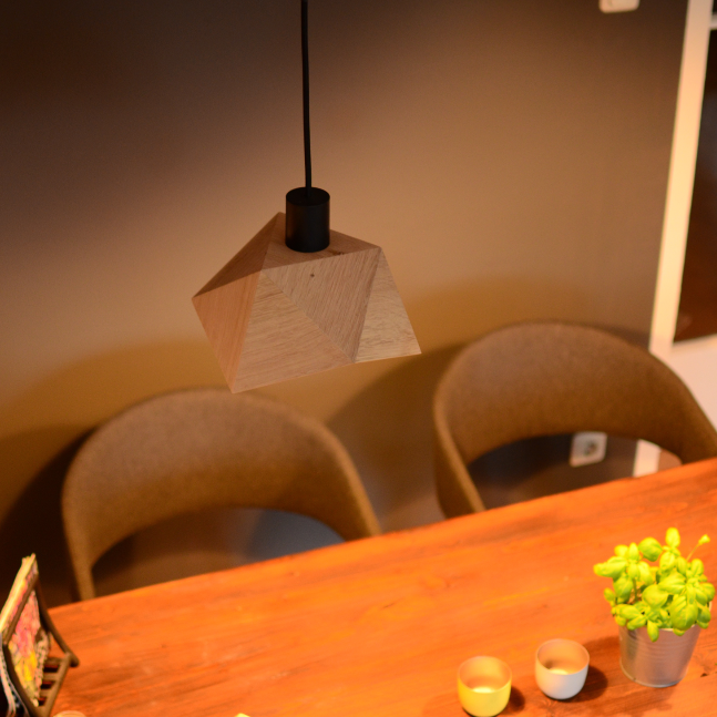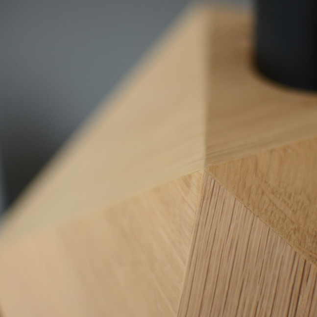 Ob die Equilatera bei Tag durch ihre Optik besticht oder abends mit ihrem Licht den Tisch einleuchtet. Ihre besondere Form und Geometrie in Kombination mit dem massiven Eichenholz ist eine Besonderheit und die niemandem unbemerkt bleibt.