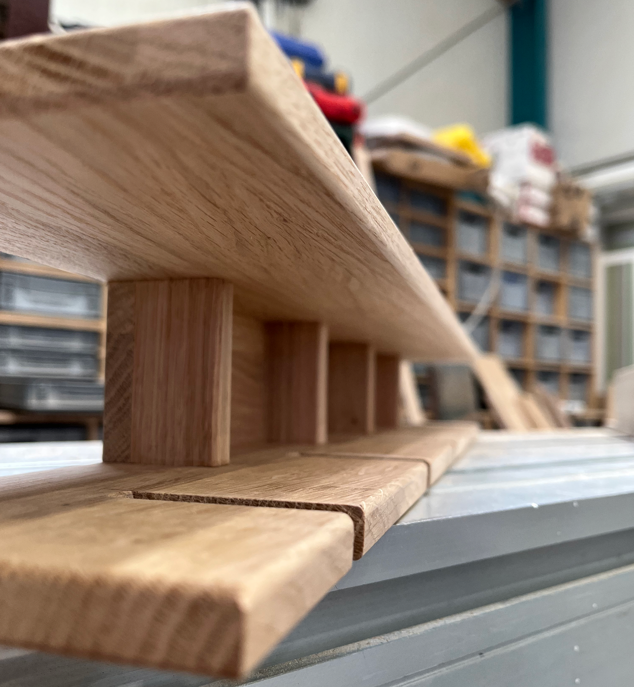 An jedes Stück wird bei uns noch Hand angelegt. Die Kombination aus modernen Maschinen und traditioneller Tischlerarbeit macht unsere Produkte besonders.