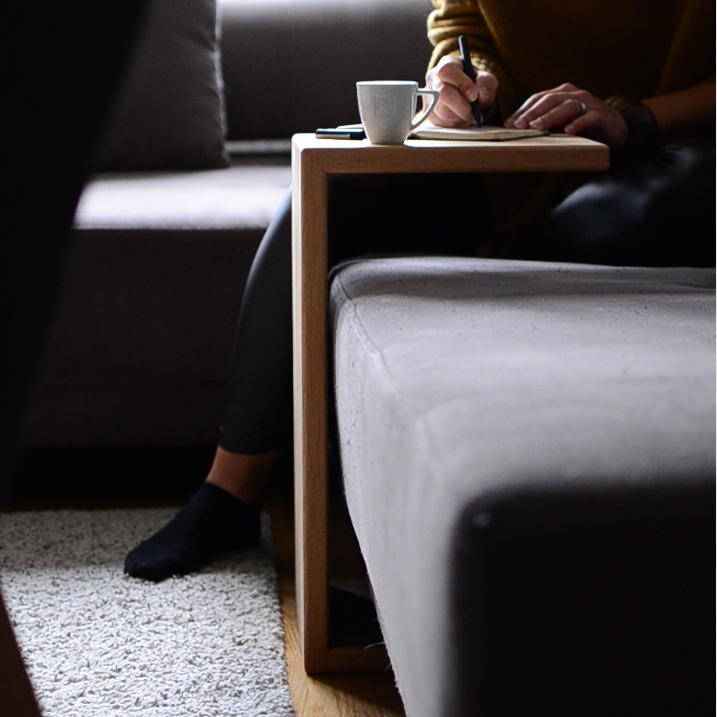 Durch seine spezielle Form lässt sich der Couchbutler direkt unter das Sofa schieben. So ist er nicht nur platzsparend, sondern ergänzt dein Sofa um eine besonders praktische Ablage.