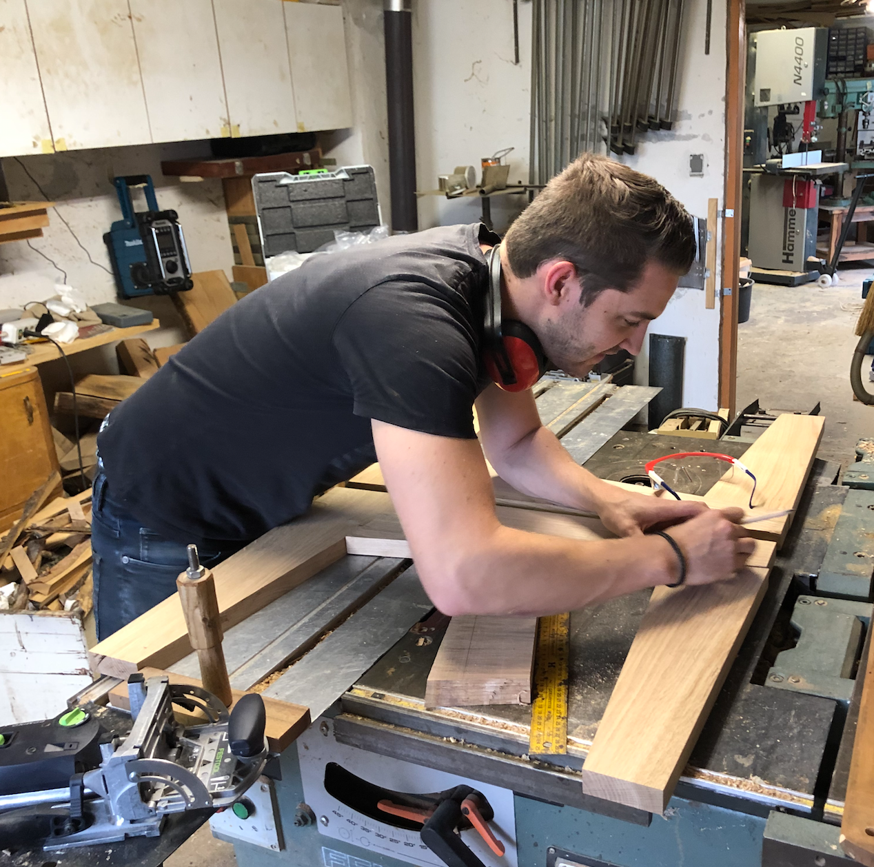 Als ehemaliger Tischler, hat er mir von Anfang an in seiner Werkstatt traditionelle Aspekte der Tischlerns, aber auch den richtigen Umgang mit dem Material Holz gezeigt.